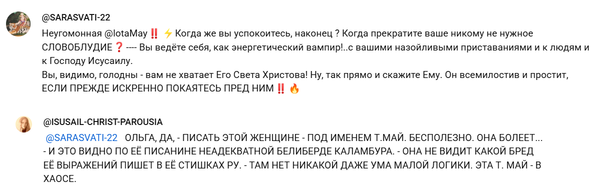 10.04.2026 04:37О МонРей и ЛотаМай - ДВУХ МАСКАХ ОДНОЙ ЛИЧНОСТИ, КОТОРЫЕ Я, ГОСПОДЬ, С НЕЁ СНИМАЮ, РАЗОБЛАЧАЯ И ОБЛИЧАЯ ЕЁ НЕВЕЖЕСТВО И ЛУКАВСТВО